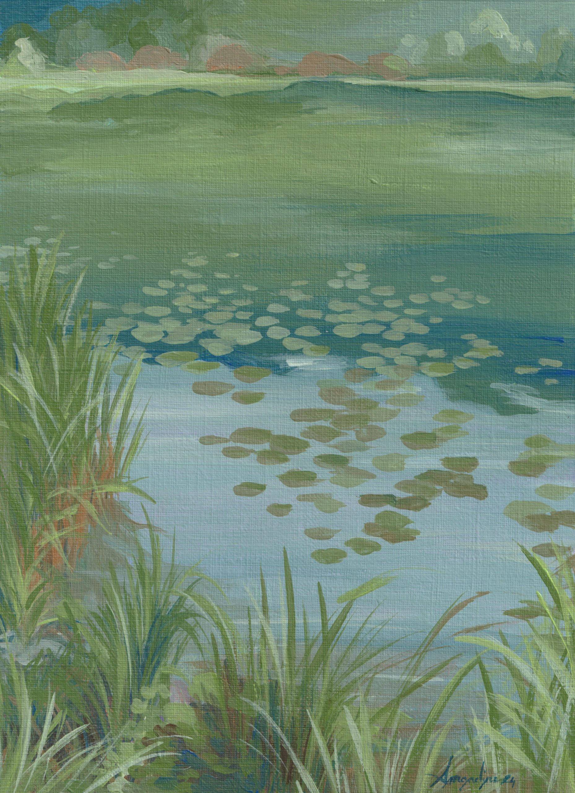 Un jour, une envie de peindre, de rendre hommage à un peintre pour lequel on a eu un coup de coeur en histoire de l’art et voilà une première toile « Le Bain » est né et d’autres vont suivre.